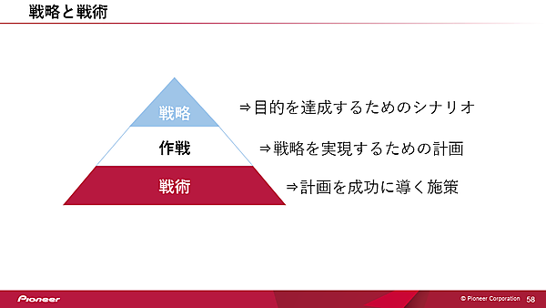 大野氏は中国古代の兵法家である孫子の言葉を引いて「戦略なき戦術は無意味」だと話した。しかし、マーケティングの現場ではしばしば「言語化しなくてもなんとなくわかっているから」「言語化が面倒だから」といった理由で、戦略を立てずに施策を実行している場合がある。大野氏は面倒でも言語化した方がよいと強く推奨した。