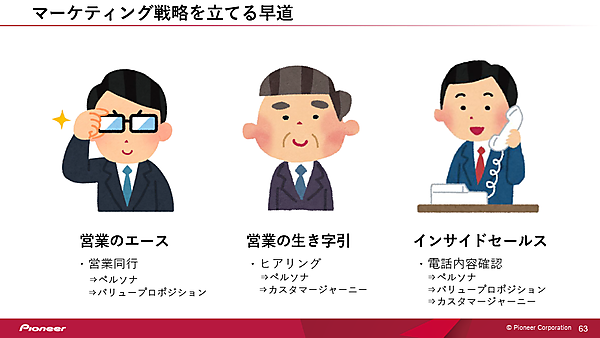 次に、営業の生き字引と呼ばれるようなベテラン営業担当者に毎週2時間、「購入するお客様はどんな人か」、「どうやって購入に至るか」をヒアリングした。さらに、見込み顧客に電話をしているインサイドセールスの担当者に電話内容を確認することにも取り組んだ。