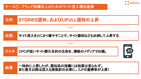 最初の頃にうまくいかなかった話として、畠山氏は過去、LIFULL STORIESでWEB広告を実施した際の話を紹介した。