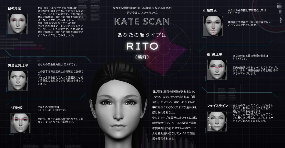 「KATE MAKEUP LAB.」の機能をLINE公式アカウント内での提供を開始した。スマホで自分の顔を読み取るだけで目・鼻・口などのパーツ比率をAIで解析して、KATE独自ロジックと掛け合わすことで顔タイプを分類し、なりたい顔に変われるメイク方法、テクニック、商品などを提案してくれる。メイク診断ツールとして広く一般公開しても良いほどだ。しかし、これをあえてLINE限定で提供している。