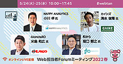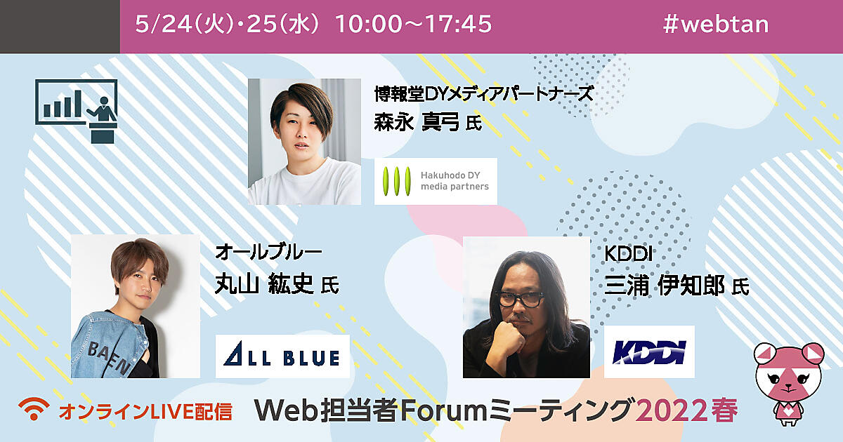 モノタロウ、カインズ、テレビ東京、KATE、ダイキン、第一生命、KDDIなどが登壇する「Web担当者Forum ミーティング 2022 春」を5月24日(火)、5月25日(水)に開催します。