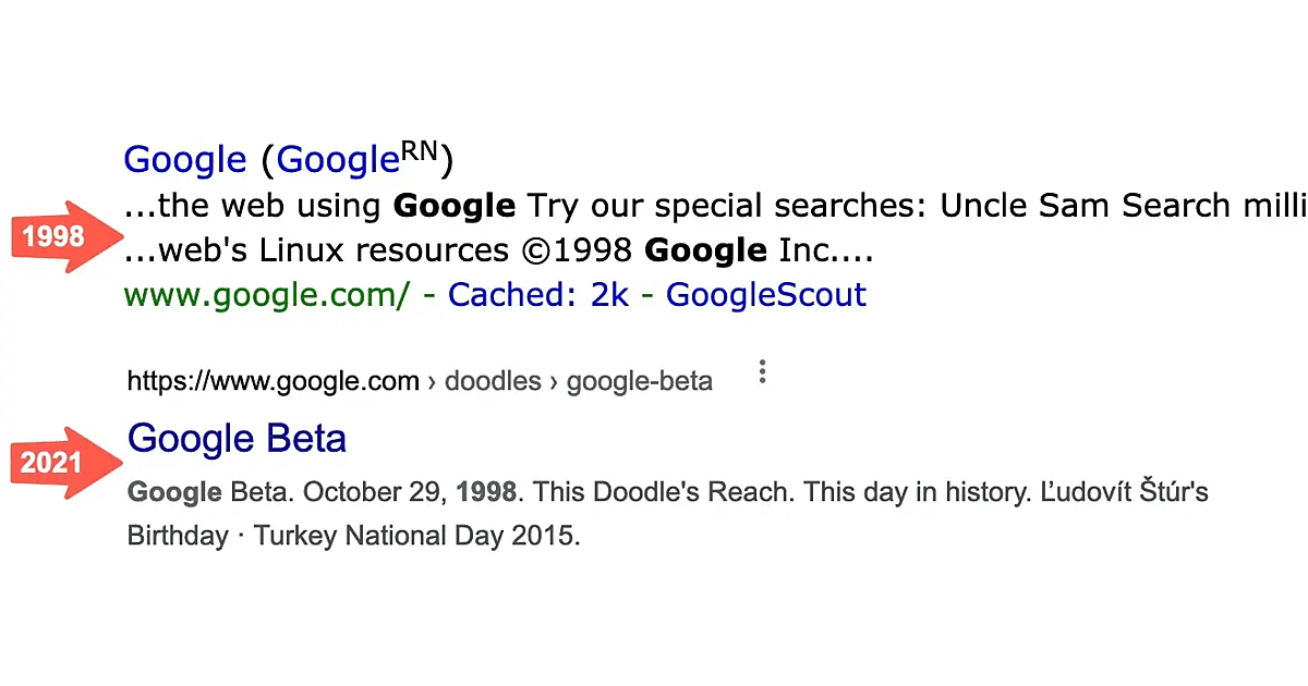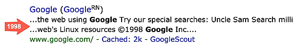 検索スニペットの表示内容は次のものだ(1998年当時の表示順上から):