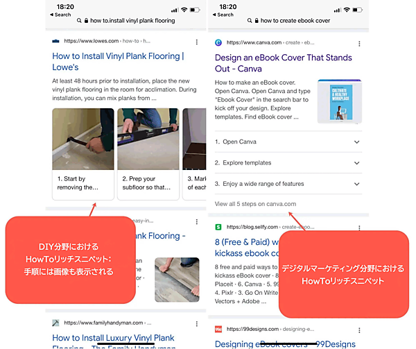 HowToスキーマは、DIY分野向けに、ステップバイステップの手引きを含むスニペットを目立たせる方法として導入された。近頃は、あらゆるチュートリアルにHowToリッチスニペットが実装されているのを目にする。