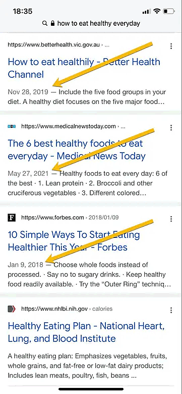 グーグルは、検索ユーザーにとって有益と思われる場合、検索スニペットに日付を表示する。クリックのパターンに日付表示が大きな影響を及ぼす可能性があるのは間違いない: