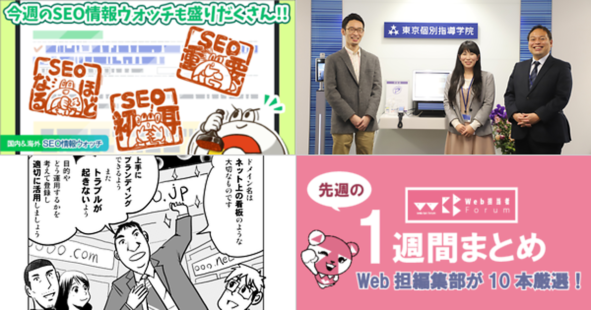 Web 担当者 Forum に掲載された情報を毎週一度、まとめてご紹介するこのコーナー、今回は解説記事 5 本とニュース記事 5 本です。