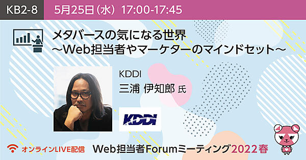 モノタロウ、カインズ、テレビ東京、KATE、ダイキン、第一生命、KDDIなどが登壇する「Web担当者Forum ミーティング 2022 春」を5月24日(火)、5月25日(水)に開催します。