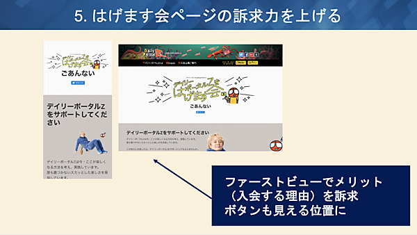 - 「はげます会」のページ訴求力を上げる