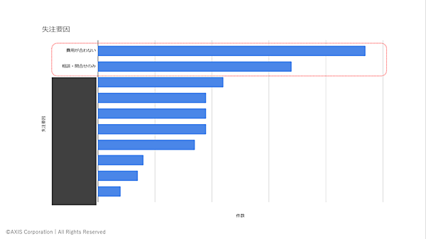 ヒアリングを通じてわかったことは、「費用が合わない」「とりあえず相談した」が失注理由のほとんどでした。これは、