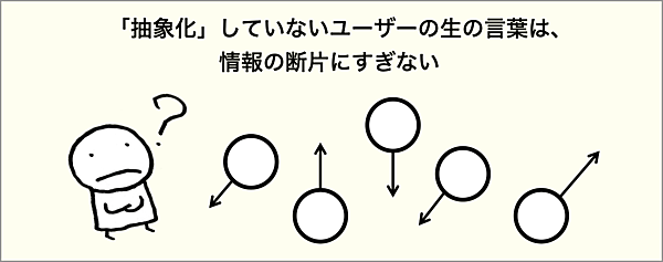言い換えると、抽象化していないユーザーの生の言葉は、まだ情報の断片にすぎないのです。