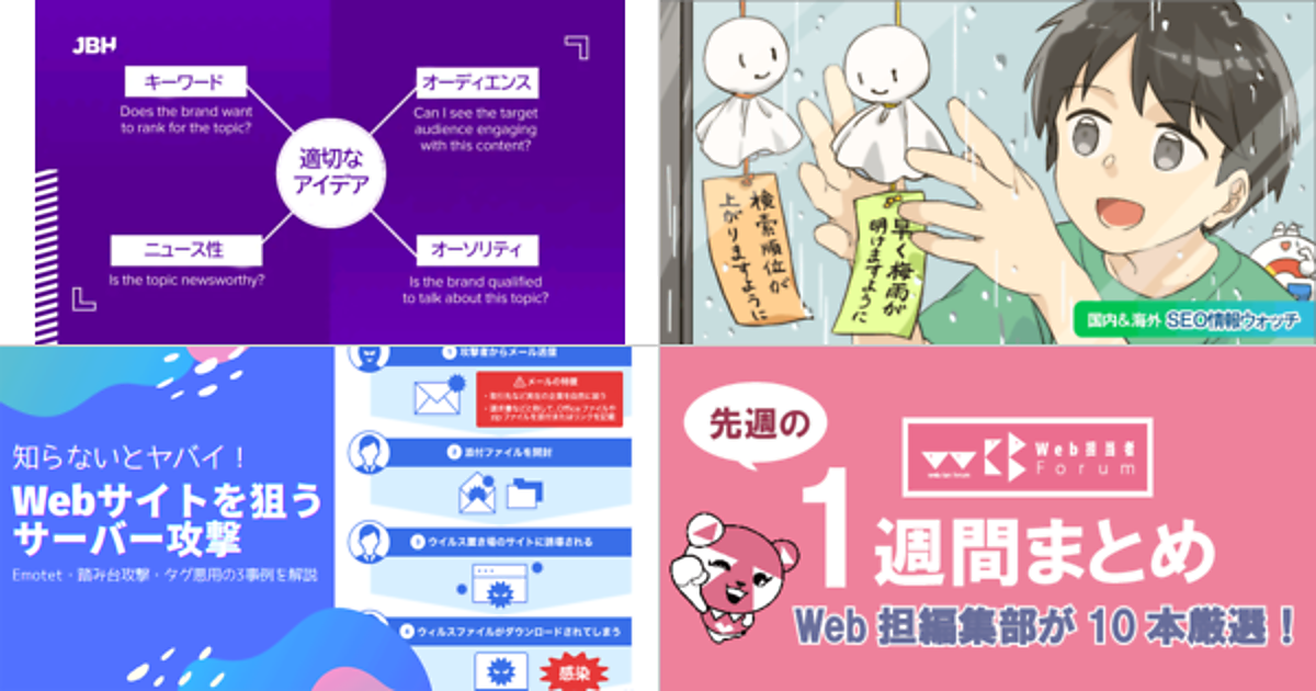Web 担当者 Forum に掲載された情報を毎週一度、まとめてご紹介するこのコーナー、今回は解説記事 5 本とニュース記事 5 本です。