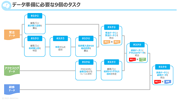 以上のデータ準備には、具体的に以下の9個のタスクが必要となる。