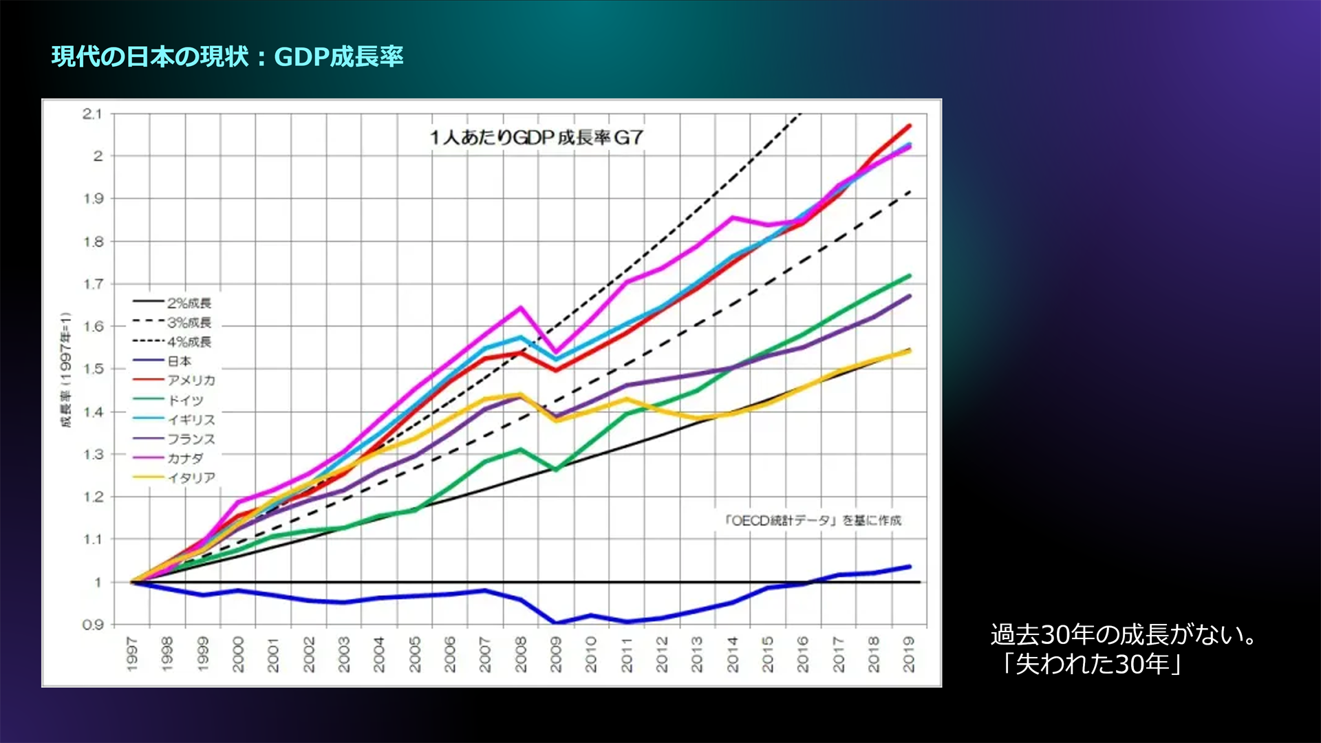 一方で日本の現状は、GDP成長率の低下、上がらない賃金、高齢者人口の増加、日本企業の相対的価値低下、低い物価水準など、悲観的データにまみれている。国連の「世界幸福度報告」においても、日本の幸福度は下落傾向にある。自己肯定感、仕事のやりがいなどについての調査でも、日本は厳しい情勢だと三浦氏は指摘する。