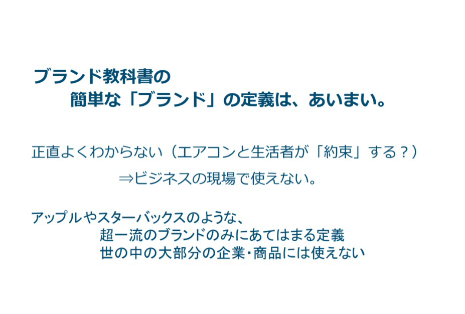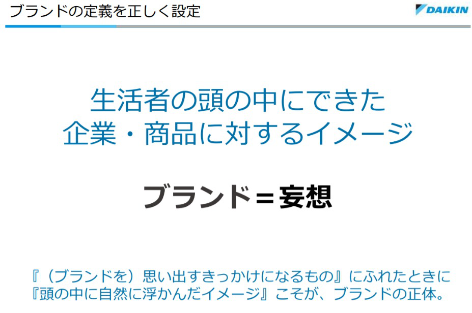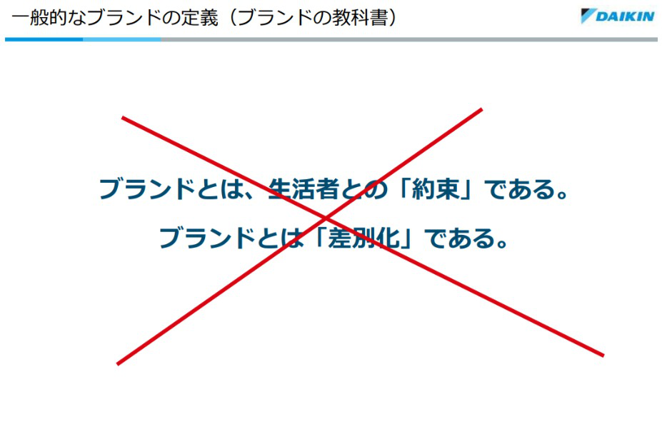 ブランドの定義は、わかるようで正直よくわからない。これに当てはめるとダイキンでは『エアコンと生活者が約束するのか?』というような無理筋な論に行き着き、関係者の印象が散漫になってしまう(片山氏)