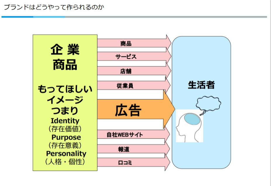 生活者から「あなたの企業・商品を人間に例えたらどんな人ですか?」と問われたときの答え。つまりは、企業・商品が持つ「人格・個性」のこと。