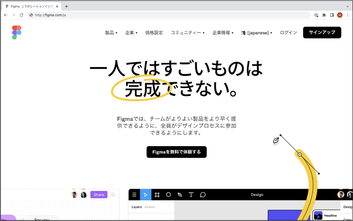 「Figma」はデザインコラボレーションツール。ソフトをインストールする必要がなく、ブラウザ上でリアルタイムに共同編集できるのが特長だ。企画からデザイン制作、開発まで一気通貫で取り組めることから、デザイナーだけでなく、マーケターやプロジェクトマネージャーなどにも重宝されている。