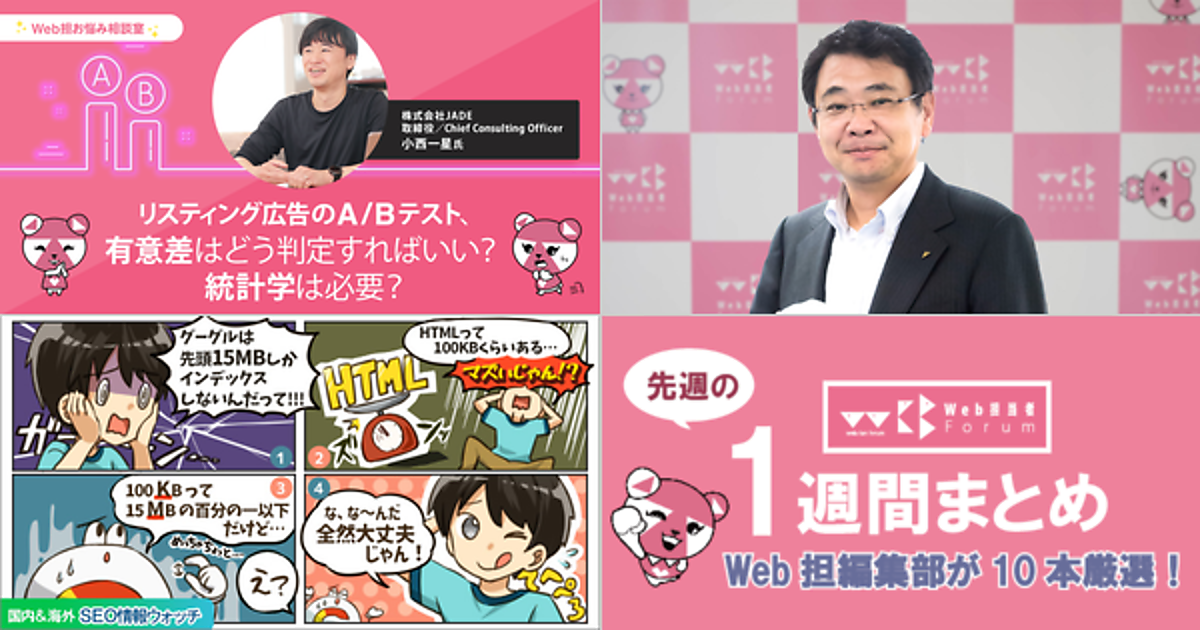 Web 担当者 Forum に掲載された情報を毎週一度、まとめてご紹介するこのコーナー、今回は解説記事 5 本とニュース記事 5 本です。