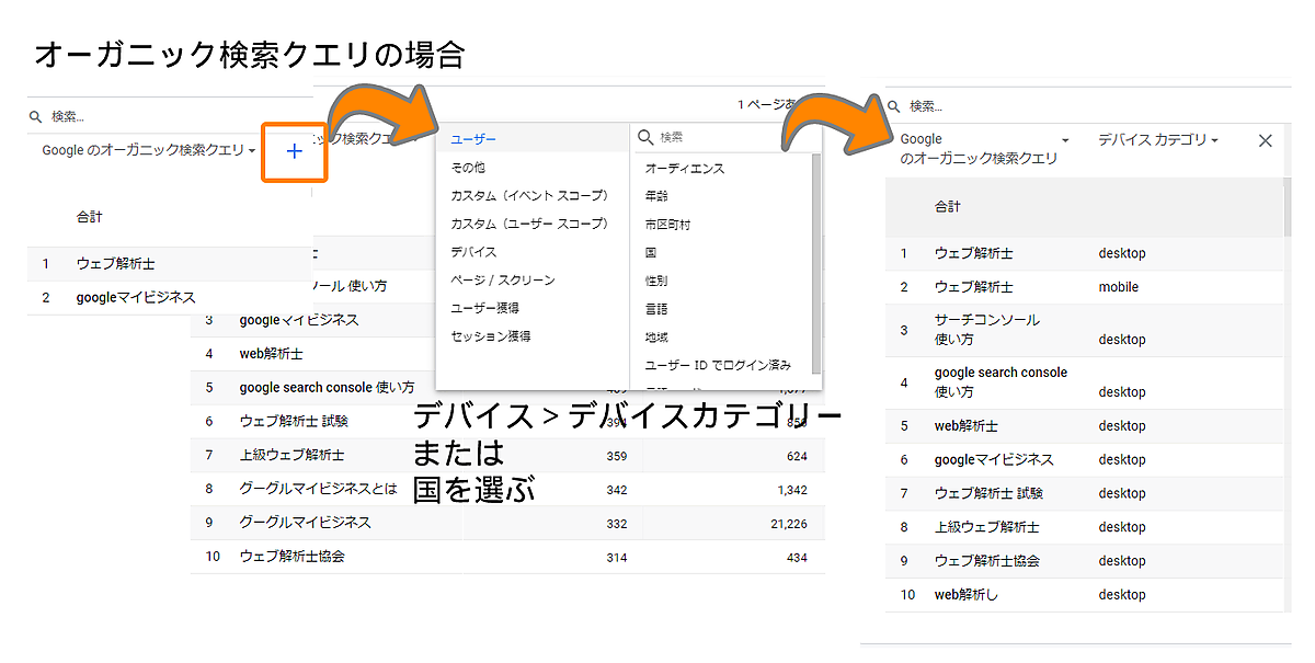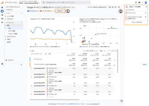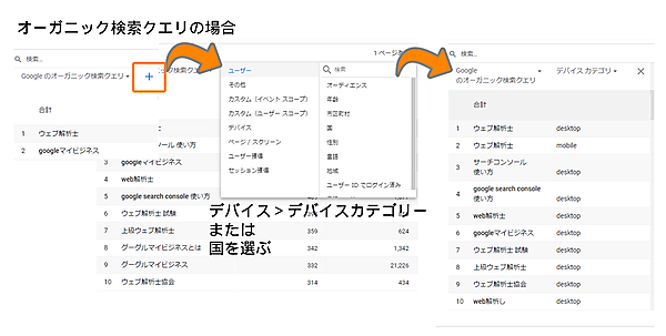 こうした場合は「デバイスカテゴリ×ランディングページまたは検索クエリ」が有効です。