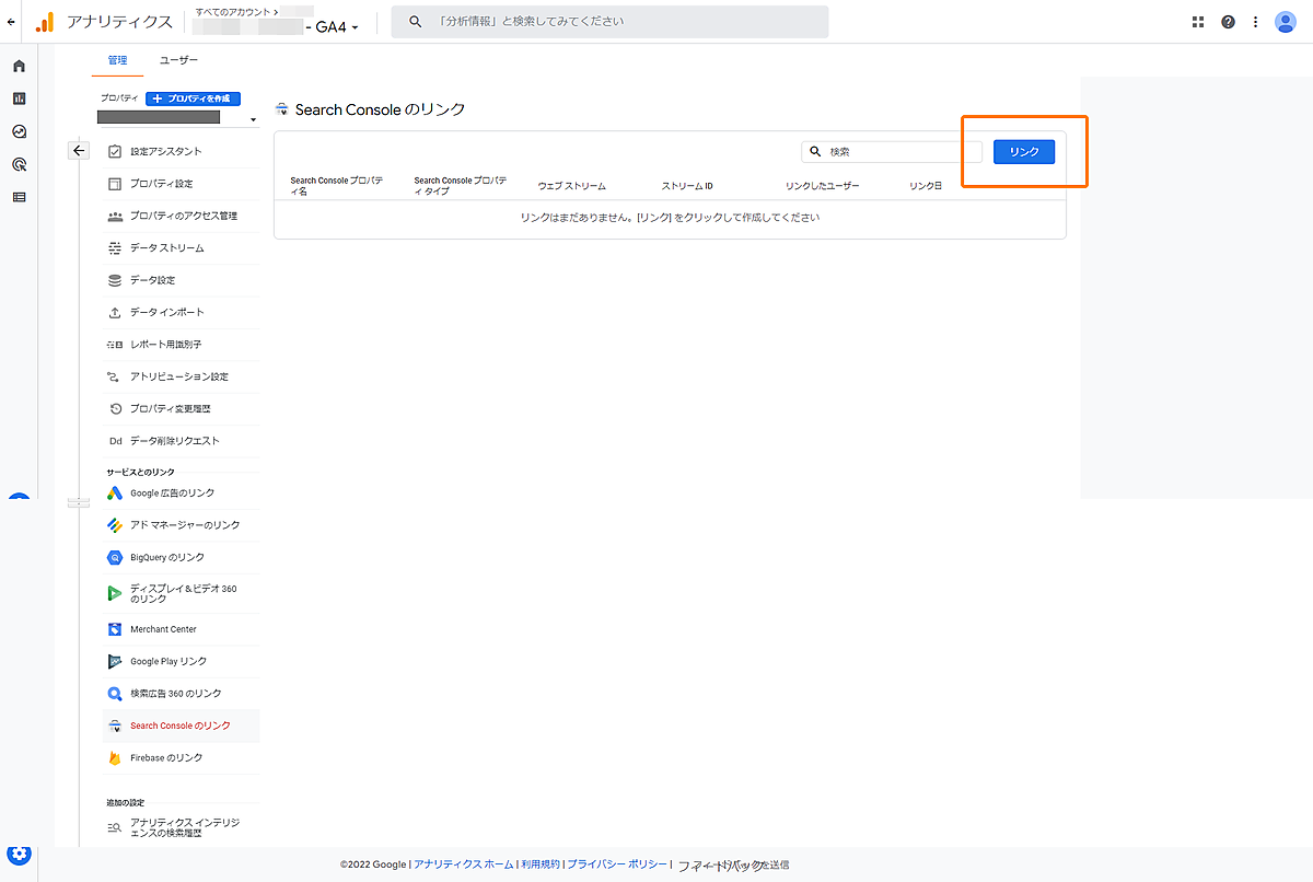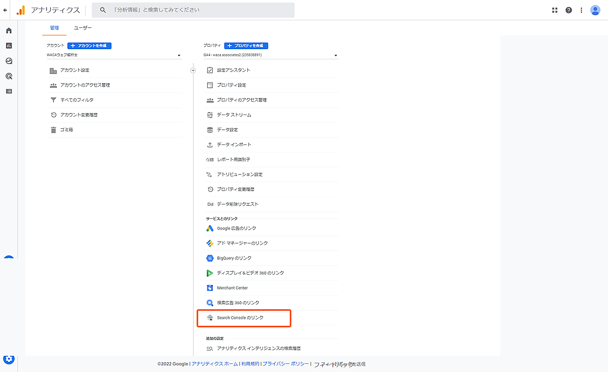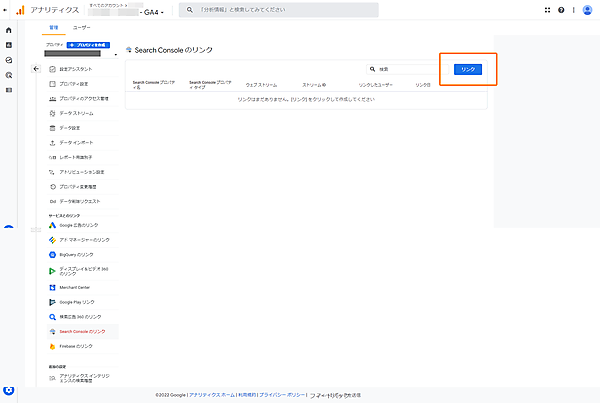 1.GA4管理画面[管理]>[Search Consoleのリンク]をクリックします。