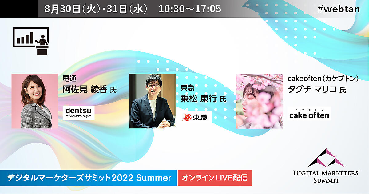 東急、アサヒビール、資生堂ジャパン、電通などが語る広告主・マーケター限定「デジタルマーケターズサミット 2022 Summer」を8月30日(火)、8月31日(水)に開催します。
