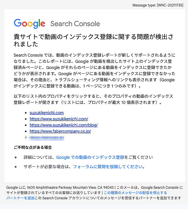 また、動画のインデックスに問題があるサイトにはSearch Consoleから警告メールが送られているかもしれない。警告の詳細は動画レポートで確認できる。