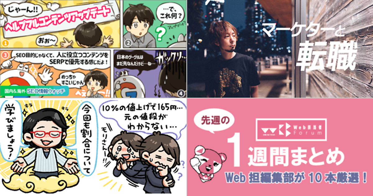 Web 担当者 Forum に掲載された情報を毎週一度、まとめてご紹介するこのコーナー、今回は解説記事 5 本とニュース記事 5 本です。