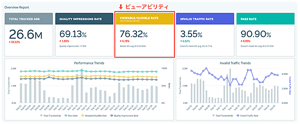 広告のビューアビリティの計測を提供するベンダーはいくつもあります。IASの場合は、このように広告キャンペーンに対するビューアビリティが管理画面に自動で更新されます。