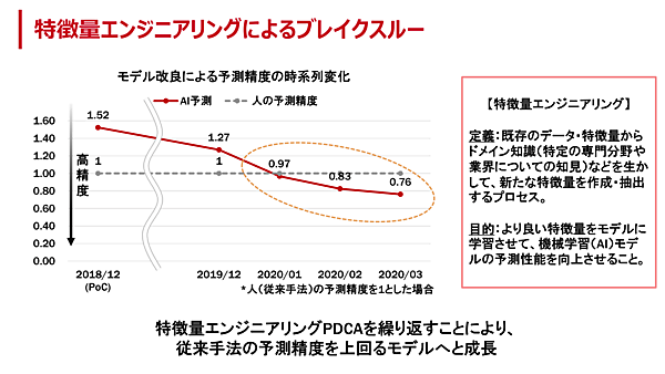香西氏は、「市場や顧客に精通した需要予測のデマンドプランナーが主導して、特徴量エンジニアリングを行うことで成果が出た」と振り返る。