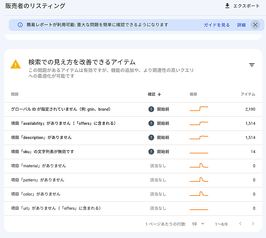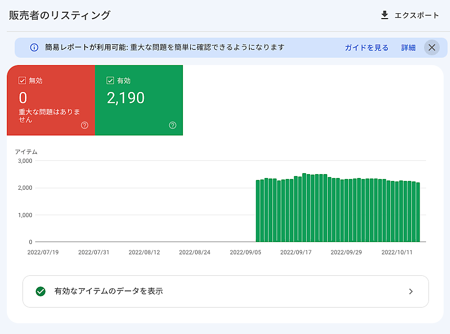 「販売者のリスティング」は、[ショッピング]タブやショッピング ナレッジパネルなどの販売者のリスティングに関わる構造化データのレポートだ(新たに追加された)。
