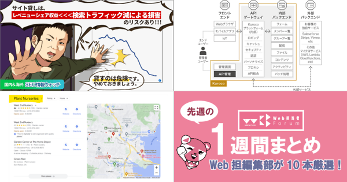 Web 担当者 Forum に掲載された情報を毎週一度、まとめてご紹介するこのコーナー、今回は解説記事 5 本とニュース記事 5 本です。