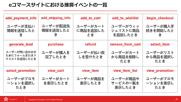 ECサイトにおける推奨イベントは以下の図のとおり。