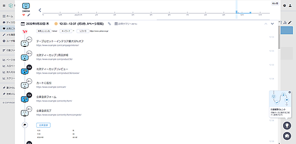 たとえば、アプリをインストールしたユーザーが、チャージの画面を見ている。次に銀行口座登録の画面を15分見て、登録せずに離脱。翌日になって再び銀行口座まで進むが結局登録完了せずに再び離脱してしまった、などのユーザー行動が見られる。
