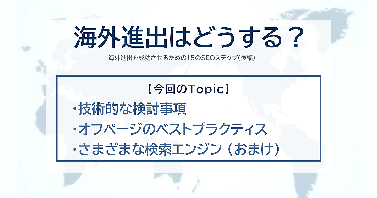 3回に分けてサイトのグローバルSEO手順をお届けしてきたこの記事も、いよいよ最終回だ。後編となる今回は、「技術的な検討事項」「オフページのベストプラクティス」「さまざまな検索エンジン」について説明しよう。