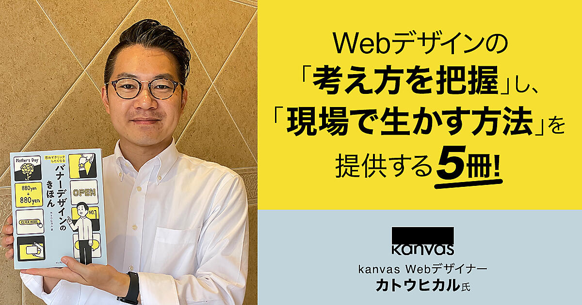 デジタルの世界で何か表現する時、欠かせないのがWebデザインだ。しかし、いわば"正解"がない世界では、クリエイティブな力だけでなく、ロジカルに発想し説明できる力も必要になる。そんな「Webデザインの初心者・初級者」に向けて、Webサイト制作をてがけるkanvas(カンバス)のWebデザイナー カトウヒカルさんにオススメの本をご紹介いただいた。