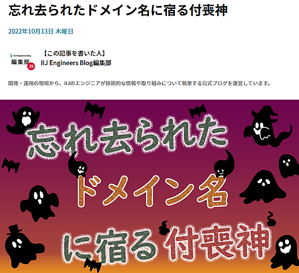 「忘れ去られたドメイン名に宿る付喪神」というおもしろいタイトルだが、中身は至極まっとうな、技術的な話だ。