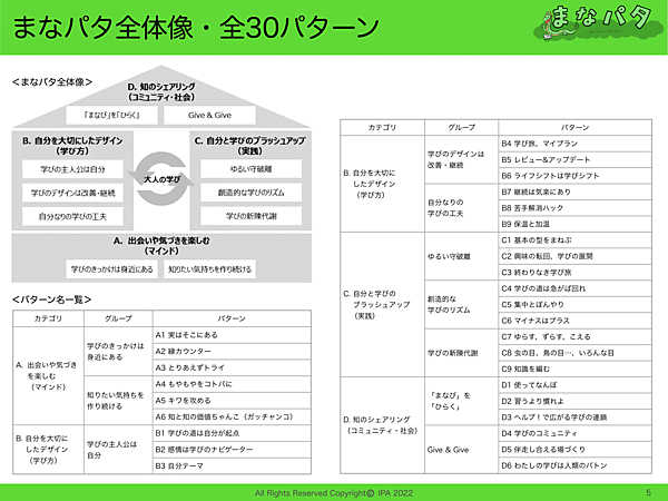 この記事では、勉強会やワークショップなどのツールとして使いやすい「まなパタ」スライド版を紹介する。より詳細なパターンについて解説したバージョンも用意している。