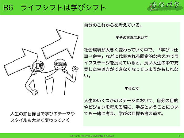 こうした大人の学びに関する悩みを解決するヒントとなるのが、「まなパタ」こと「大人の学びのパターン・ランゲージ」だ。