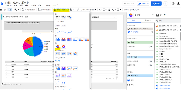 (2)「データのレポートへの追加」でGoogleアナリティクスを選択する