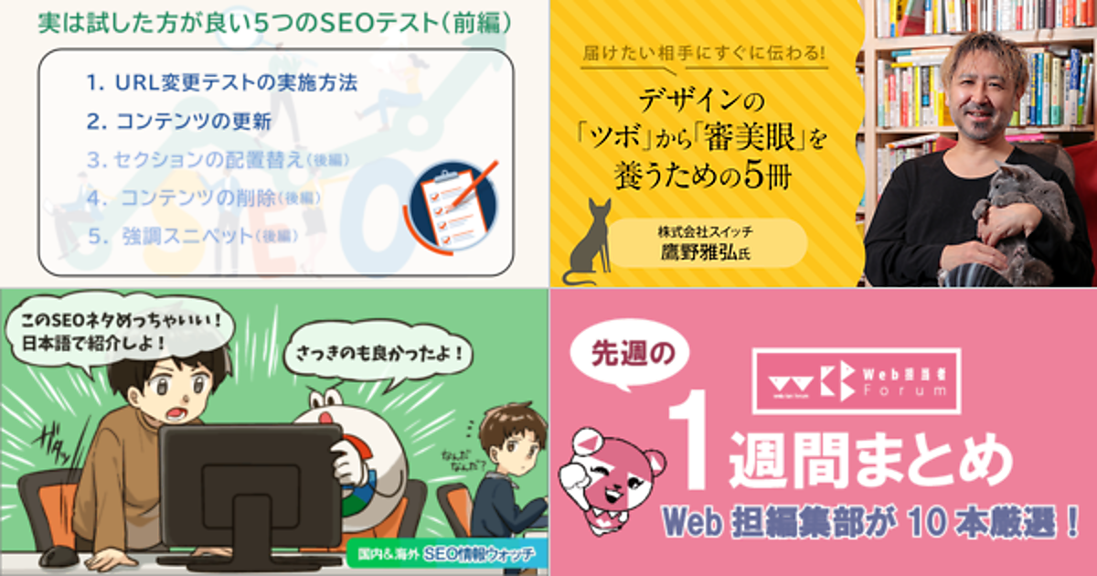 Web 担当者 Forum に掲載された情報を毎週一度、まとめてご紹介するこのコーナー、今回は解説記事 5 本とニュース記事 5 本です。