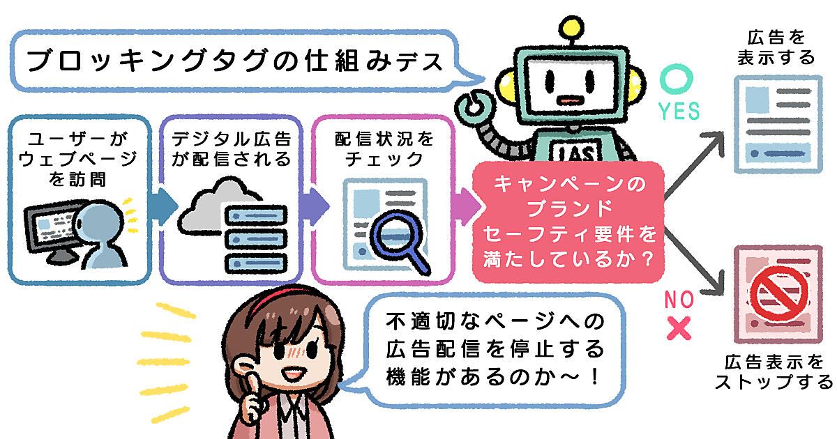 ここまで説明してきたタグは、配信状況の計測を行う計測タグでしたが、タグのなかには計測したうえで、不適切なページへの広告配信を停止する機能を持つ、高度なタグもあります。「ブロッキングタグ」です。