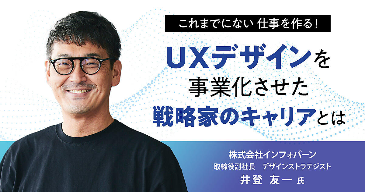 こう話すのは、株式会社インフォバーン 取締役副社長・井登友一氏だ。新卒でマーケティング支援会社に入社し、ユーザーリサーチやUXデザインに興味を持った。これらの領域を事業化した後、インフォバーンに転職。京都支社を立ち上げ、さらにはデザイン支援事業部も新設した。変化が激しいWeb業界で、井登氏は何を考え、どう取り組んできたのか。井登氏のキャリアに迫った。