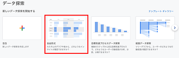 探索のページに移動します。「新しいデータ探索を開始する」から「自由形式」を選択します。