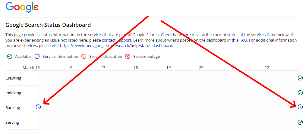 グーグルは、「ランキングシステムのアップデート履歴」を「検索ステータス ダッシュボード」に統合した。