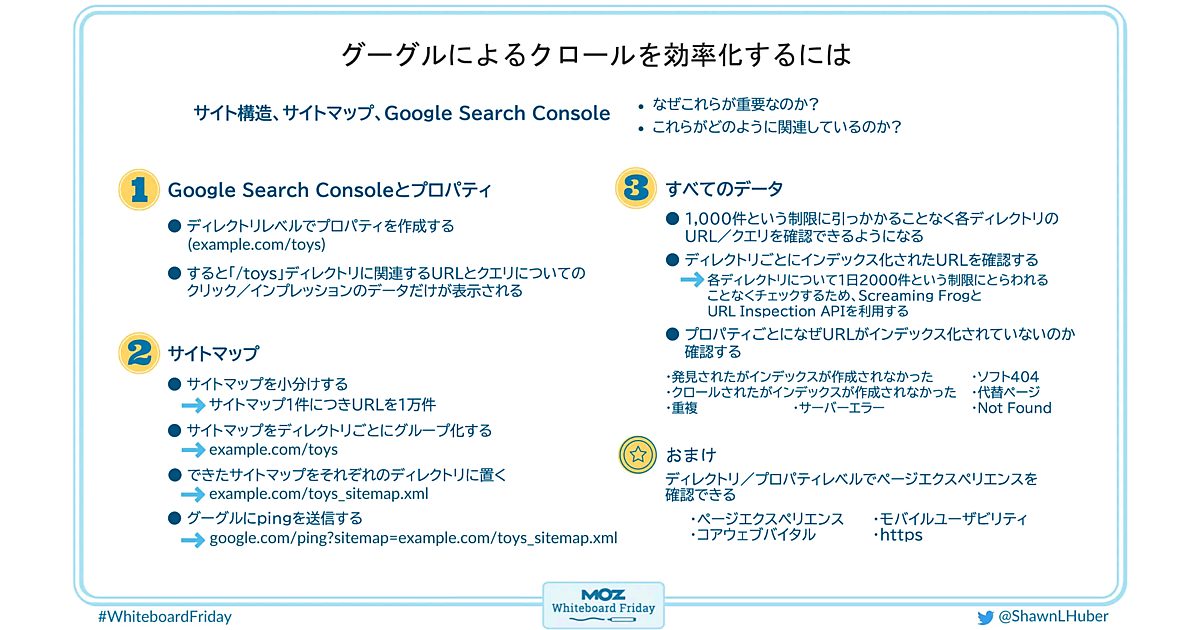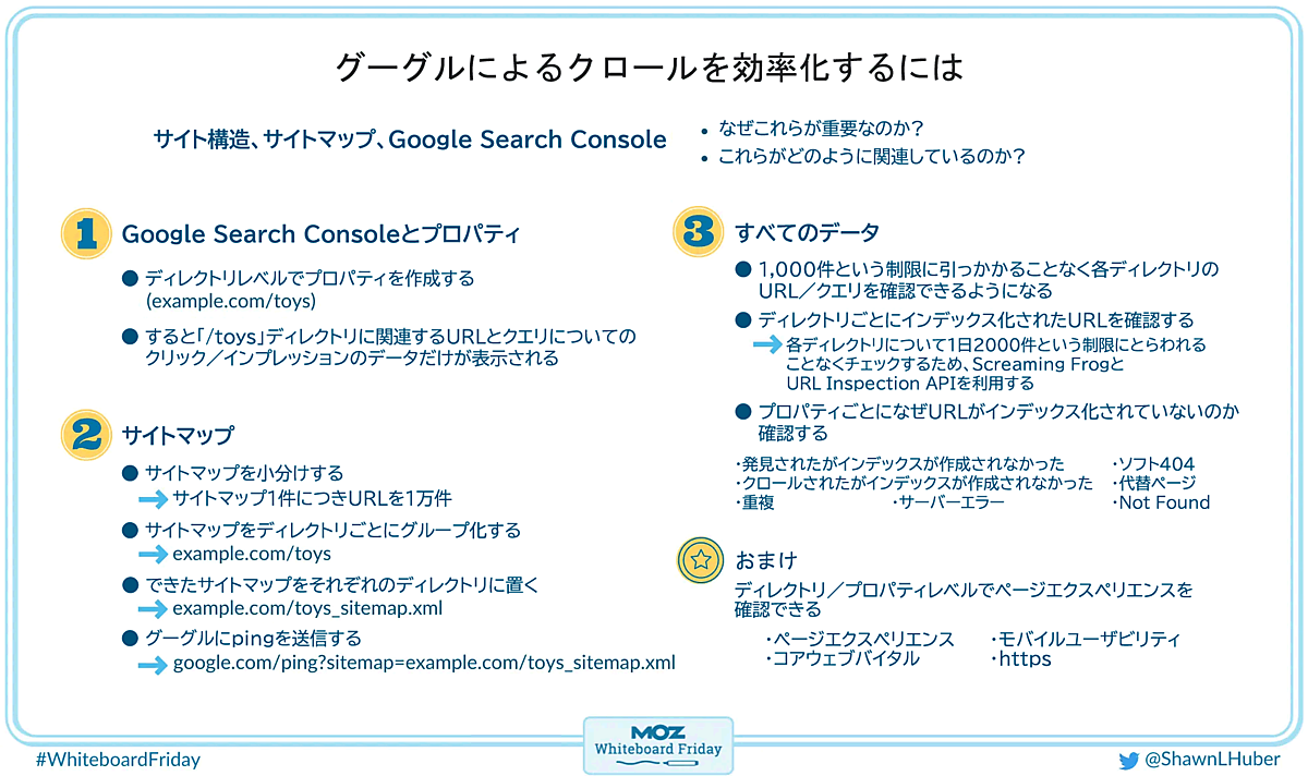 まずは、ざっくりとした話から始めよう。グーグルが効率的にクロールできるようにするには、次の3つが重要になる: