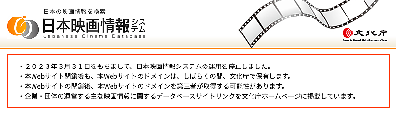 - 2023年3月31日をもちまして、日本映画情報システムの運用を停止しました。