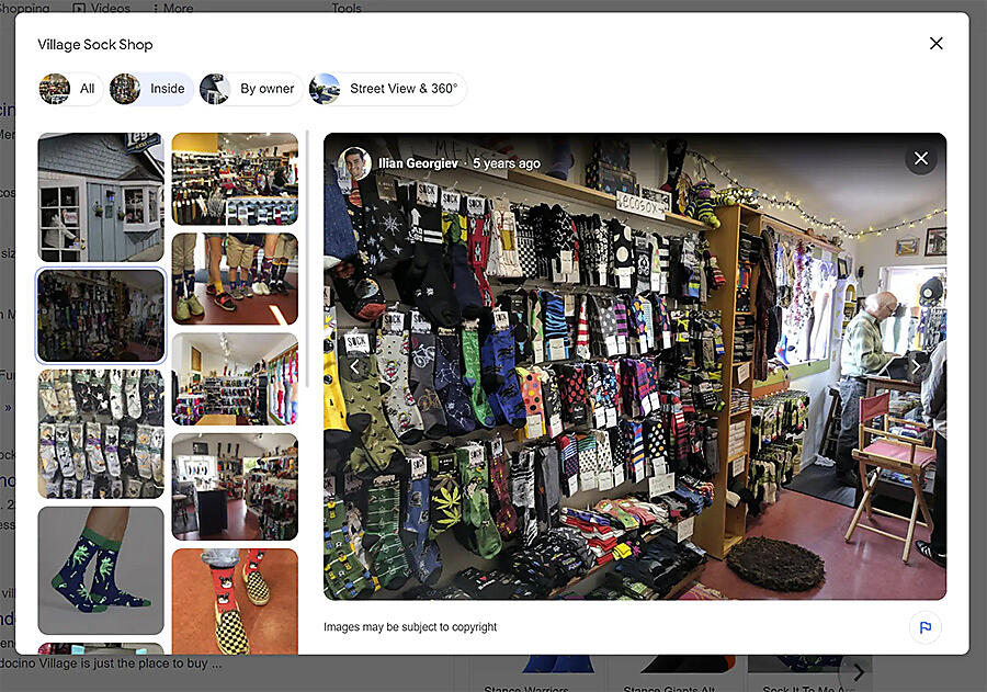 たとえば次の写真を見てほしい。こうした写真がローカルビジネスのGoogleビジネスプロフィールにリストとして掲載されていれば、お客さんは誰が見ても、この店が近所で靴下を買いに行くのに最適な場所だとわかるだろう。