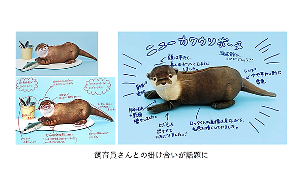 YOU+MORE! では水族館・動物園とのコラボ製品が多く、現場で働く飼育員の知識量に驚かされるという。そうした専門家の知見は、商品開発の「仕上げ」のクオリティアップはもちろん、それ自体がストーリーとしても機能する。YOU+MORE! がもともと発売していたカワウソ型のポーチについては、水族館飼育員とTwitterで公開やりとりをし、頭頂部の凹みや尻尾形状を変更した新バージョンを発売したケースすらある。