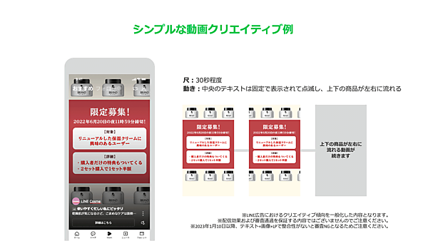 柿崎 まず、LINEで表示される動画広告では“冒頭ゼロ秒時点”が自動的にサムネイルとして表示されます。つまり、ゼロ秒時点の表示が静止画としても魅力あるものになっていることが望ましいです。