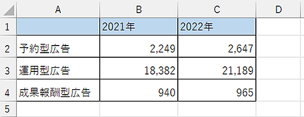 寿限無?! 構成比は、ものすごく大事な指標だから、きちんと理解しておいてね。ついでに、日本の広告費全体に占める検索連動型広告費の構成比も出してみてね。
