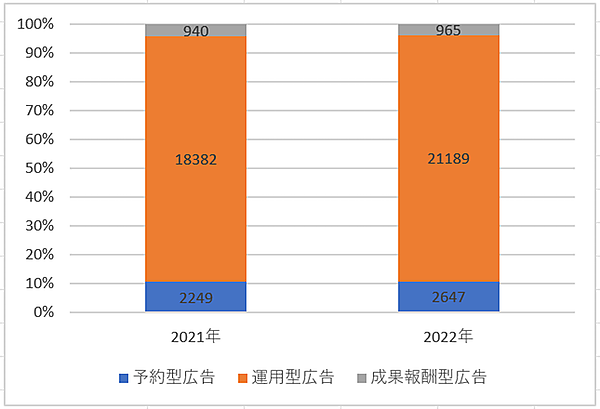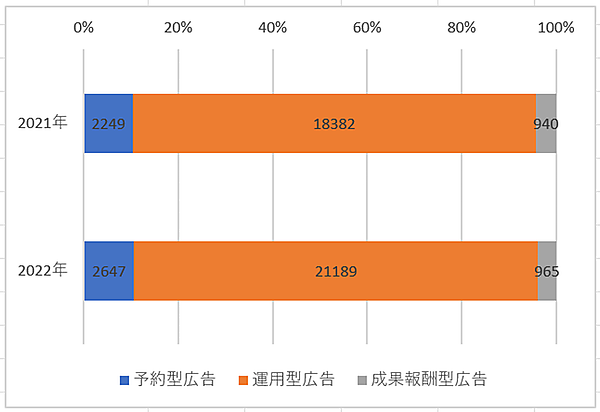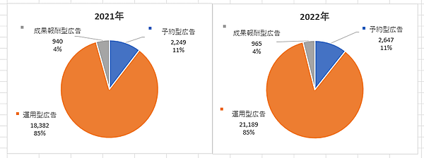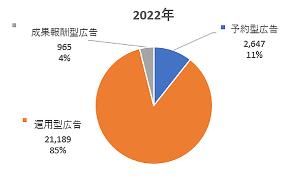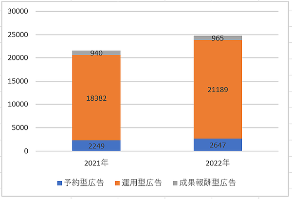 先輩、Web担のこの記事によると「日本の総広告費が7兆1,021億円と、1947年の推定開始以降で過去最高を記録したこと、インターネット広告費は3兆912億円と総広告費全体の43.5%を占めた」そうですよ。