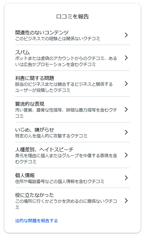 - 明確なポリシー違反であれば、口コミの削除をリクエストする